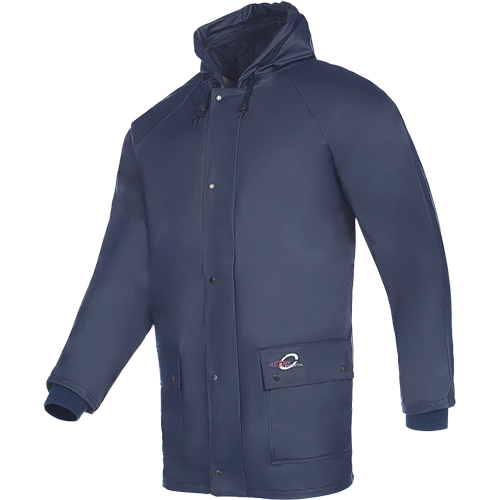 zimní parka do deště s pevnou kapucí a dvěma našitým kapsami s klopami a zapínáním na druky je vyrobena z Flexothane®, což znamená, že je 100% voděodolná a větruodolná; lehká a pohodlná bunda má odnímatelnou fleece podšívkou a kapucí
