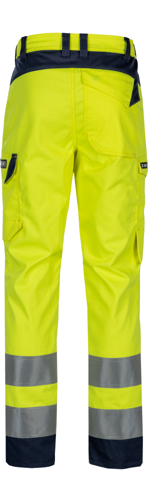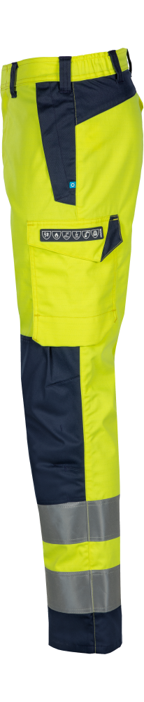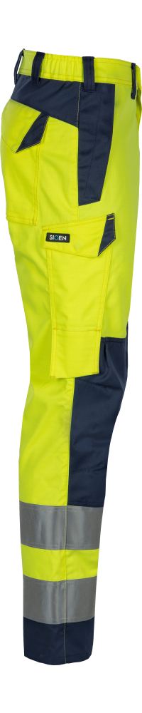 pánské HI-VIS kalhoty vyrobené z lehké látky 260 g/m² nabízejí optimální viditelnost a ochranu pred tepelným nebezpecím elektrického oblouku; zapínání na 1 skrytý knoflík / prední poklopec se zapínáním na zip; 2 vložené kapsy s klopou a zapínáním na druky; 1 zadní kapsa a 1 stehenní kapsa pod klopou s druky; 1 zesílená kapsa na metr pod chlopní se skrytým drukem; elastický pas; kapsy na nákoleníky nastavitelné ve 2 výškách, šité reflexní nehorlavé pruhy