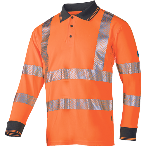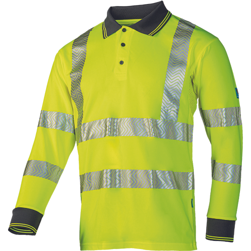HI-VIS polokošile s dlouhým rukávem; ventilační síťovina v podpaží; tištěné reflexní pruhy; anti mikrobiologický materiál.