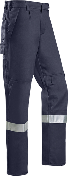pánské kalhoty s ochranou proti tepelnému účinku elektrického oblouku; antistatické; poklopec se zapínáním na zip; elastický pas; 2 postranní kapsy se zapínáním na druky kryté klopou; 1 zadní kapsa se zapínáním na druky kryté klopou; 1 zadní pravá stehenní kapsa; kolenní kapsy pro vkládání nákoleníků; dvakrát prošité reflexní pruhy odolné proti plameni okolo spodních nohavic; vhodné pro svařování.