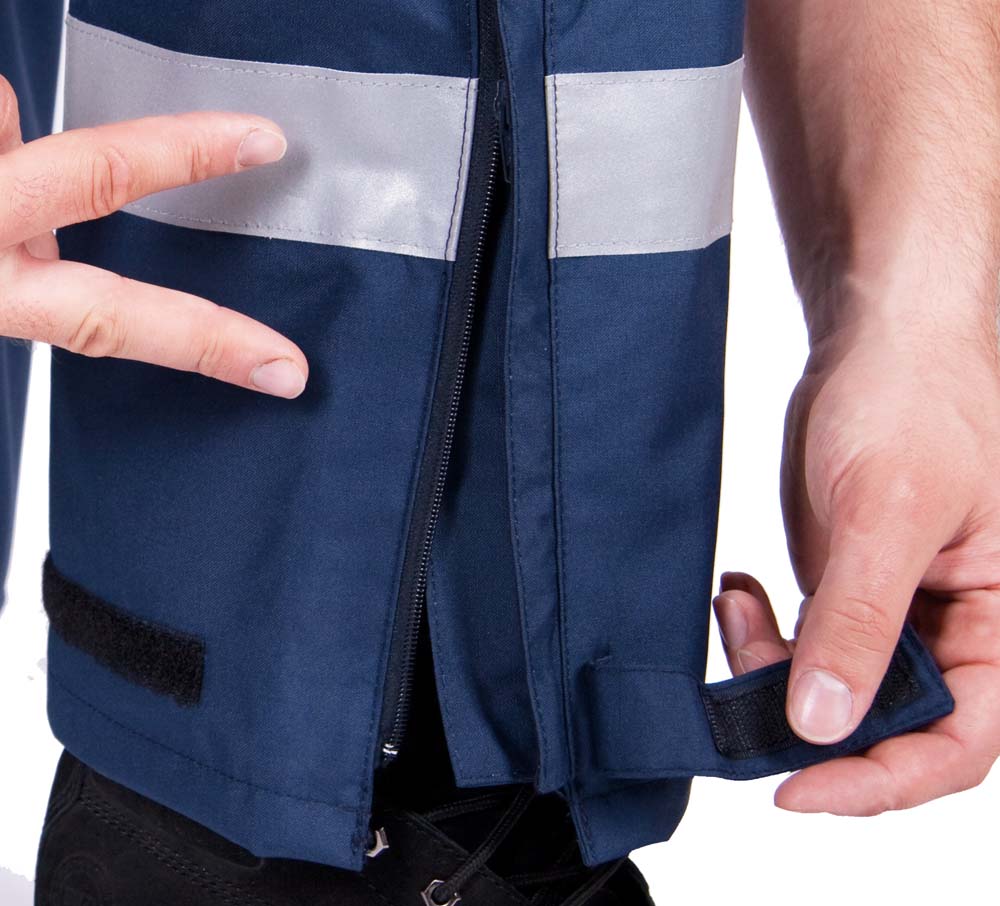 Antistatické, nehořlavé a chemicky odolné kalhoty s pevnou bavlněnou nehořlavou podšívkou Pyrovatex, elastickým pasem a přelepenými švy.