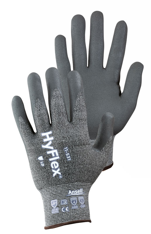 Pletené bezešvé rukavice, 18G úplet, kategorie prořezu 3 s vlákny INTERCEPTtm Technology, Nitrilové povrstvení. Pletené zápěstí.