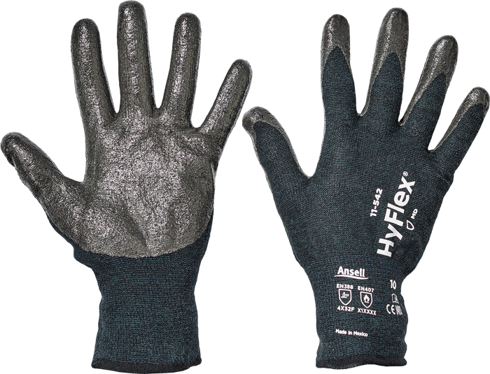 Pletené bezešvé rukavice vyrobené z protiřežných vláken INTERCEPT™ Technology. Nitrilové povrstvení ve dlani a na prstech. Exkluzivní design maskující zašpinění. Jsou vhodné k přerušované manipulaci s horkými předměty až do 100 °C.
