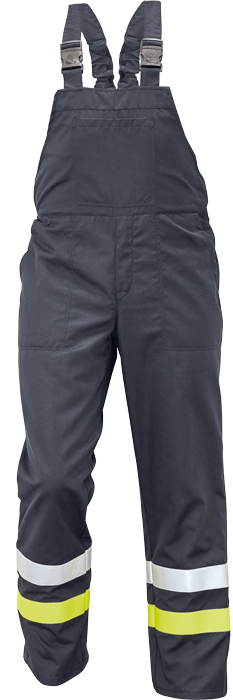 Antistatický ochranný odev nabízí ochranu pred teplem, ohnem a elektrickým obloukem. Poskytuje vhodnou ochranu pred úcinky elektrického oblouku vzniklého, pri jednofázovém zkratu (7 000 A) v síti nízkého napetí (max. 400 V, strídavé napetí 50 Hz). Jeho materiál má antistatické (elektrostaticky disipativní) vlastnosti, a z tohoto duvodu ho lze používat ve výbušných prostredích a v blízkosti horlavých materiálu. Hodí se pro pracovníky vystavené teplu a ohni. Ochranný odev zajistí ochranu pred úcinky prímého ohne po dobu 4 sekund a pred úcinky tepla o intenzite 20 kW/m2 po dobu 7 sekund. Materiál je sám o sobe odolný vuci teplu a ohni, a praní tak na nej nemá žádný vliv. Prsní kapsa; boční kapsy; zdvojený materiál - od stehen do pasu; 1-1 stříbrný pásek a hi-vis žlutý reflexní pásek na nohavicích