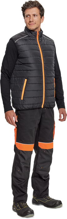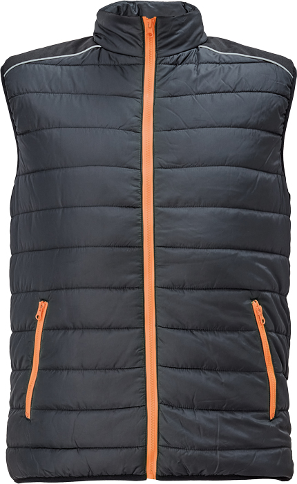pánská zateplená vesta; elastický pas; zapínání na zip; 2 boční kapsy na zip.