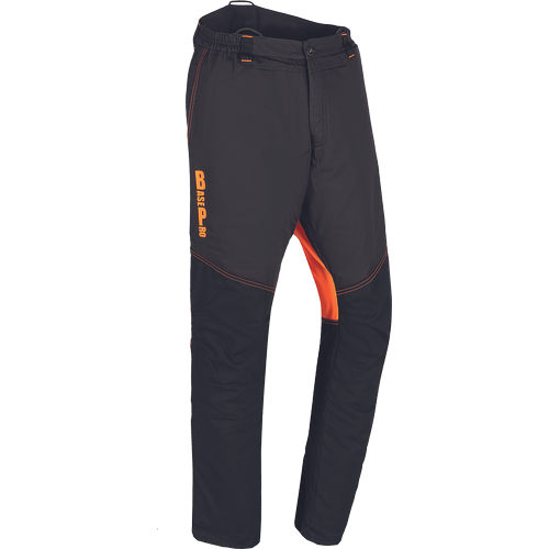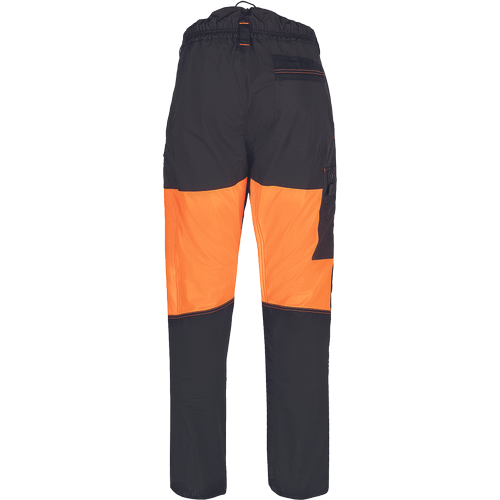 pánské protipořezové kalhoty s elastickým pasem, poutky na opasek a připevnění šlí; 2 postranní kapsy; 1 zadní kapsa; 1 malá stehenní kapsa.