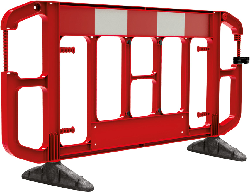 bezkonkurenční pevnost a odolnost; vyrobena z nejodolněnjších původních materiálů (Polypropylen, PVC); reflexní panel - třída R1 s vysokou reflexivitou, o 20% více odráží světlo než standardní reflexní material; ANTI-TRIP FEET - Prolisovaný design masivních nohou, který zabraňuje nehodám; SURELOCK™ Bariérová konektorová svorka – bariéry lze vzájemně spojovat i na nerovném povrchu a obrubnících; chytrá zámková konstrukce maximalizuje stabilitu při skladování a přepravě