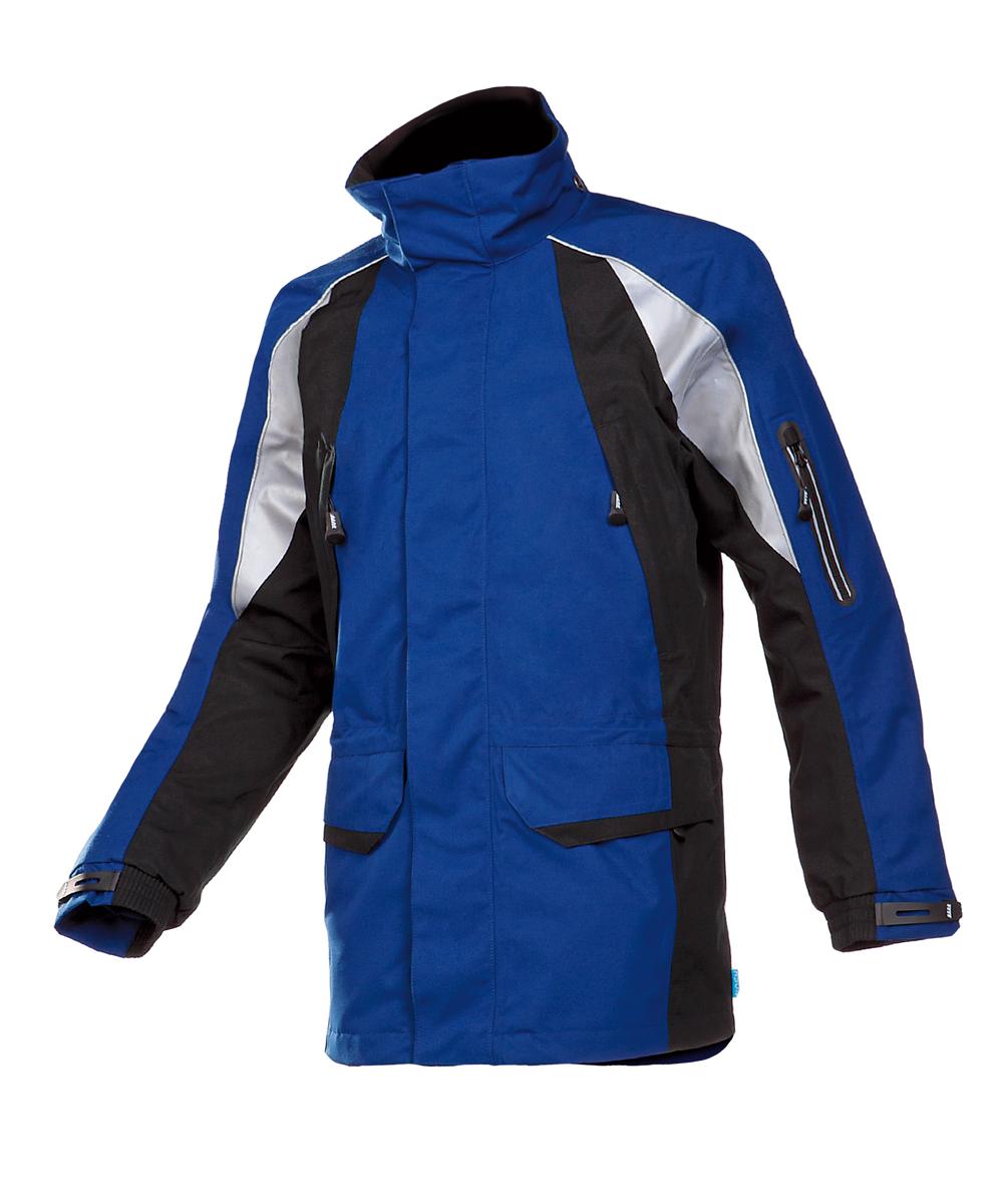 Vysoce prodyšná, nepromokavá a větruodolná bunda. Zapínání na zip, odnímatelná kapuce s kšiltem a zapínáním u krku, 2 náprsní kapsy na zip, 2 kapsy na zip a 1 kapsa na rukávu. Stahovací šňůrka v pase a spodním okraji bundy. Délka zad 85 cm (u velikosti L).