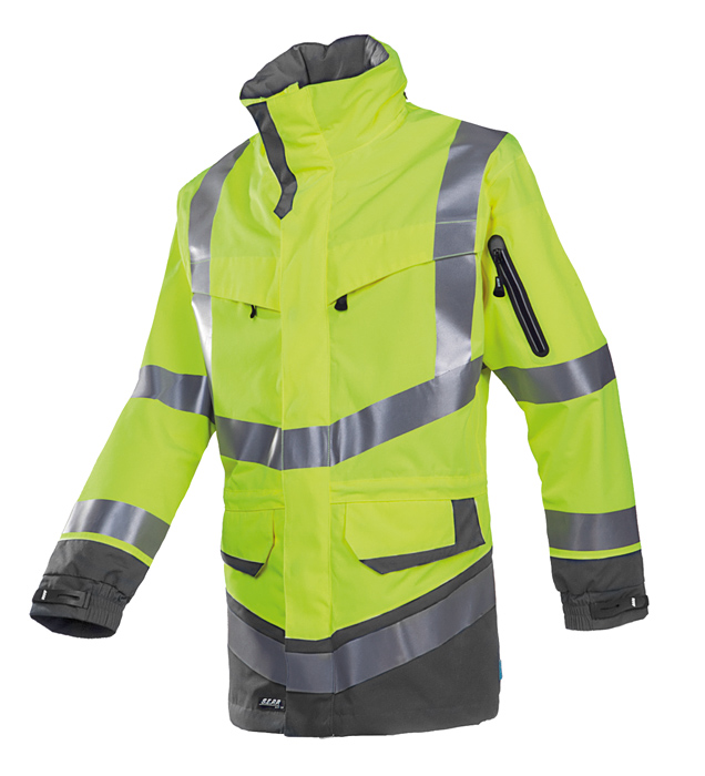 • Hi-vis bunda do deště • 100% voděodolná/větruodolná/vysoce prodyšná • Vlhkost odvádějící vrstva na vnitřní straně/pohodlná/vysoká odolnost proti roztržení • Podlepené švy • Dlouhý taháček na zipu pro pohodlnější zapínání/rozepínání • Odepínatelná kapuce s ochranou brady/zip krytý dvojitou klopou • Ventilace pod pažemi/šňůrky v pase a na dolním okraji • Do bundy je možné připnout různé typy podšívky