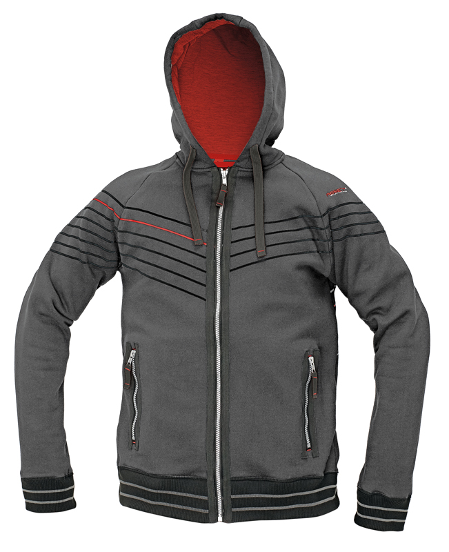 • pánská mikina na zip s kapucí ze směsového uvnitř počesaného výplňku • 2 postranní kapsy na zip • léga z kontrastního materiálu kolem zipů • dvojitá kapuce s kontrastní barvou podšívky • pevné úpletové patenty na rukávech a ve spodním obvodu • dekorativní šňůrky v kapuci v kontrastní barvě • potisk na hrudi a rukávech • výšivka Assent na rukávu