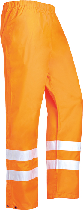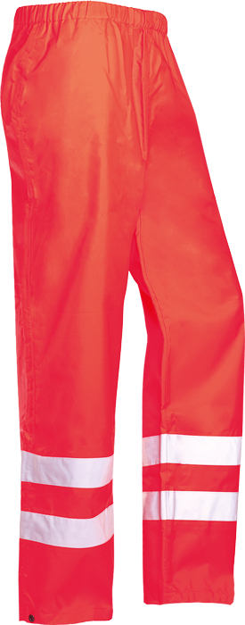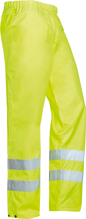hi-vis nepromokavé a větruodolné kalhoty s excelentní prodyšností dle EN 343 v nejvyšší třídě 3; lehká a velmi pevná konstrukce oděvu zajišťuje vysoký komfort při práci; elastický pas; možnost zúžení nohavic pomocí druků