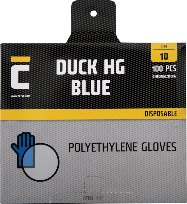 Jednorázové rukavice z modré polyetylénové fólie. Balení lze zavěsit a obsahuje 100 kusů.