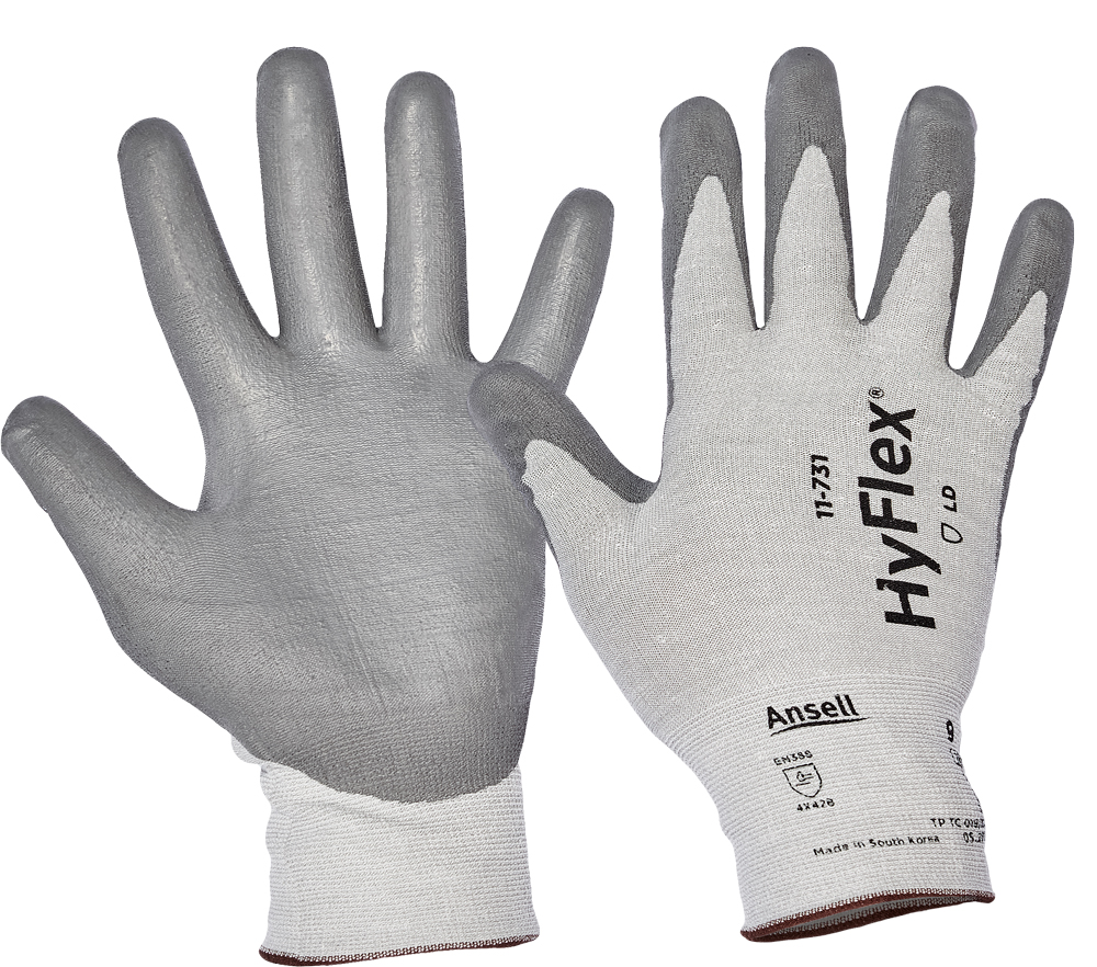 Pletené bezešvé rukavice, 18GG úplet, protiřezná vlákna INTERCEPT™ Technology, PU povrstvení, Pletené zápěstí.