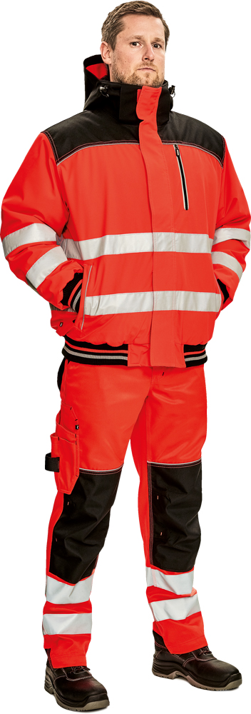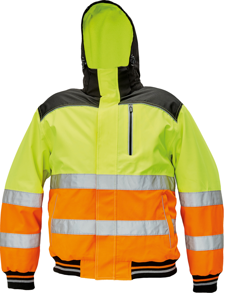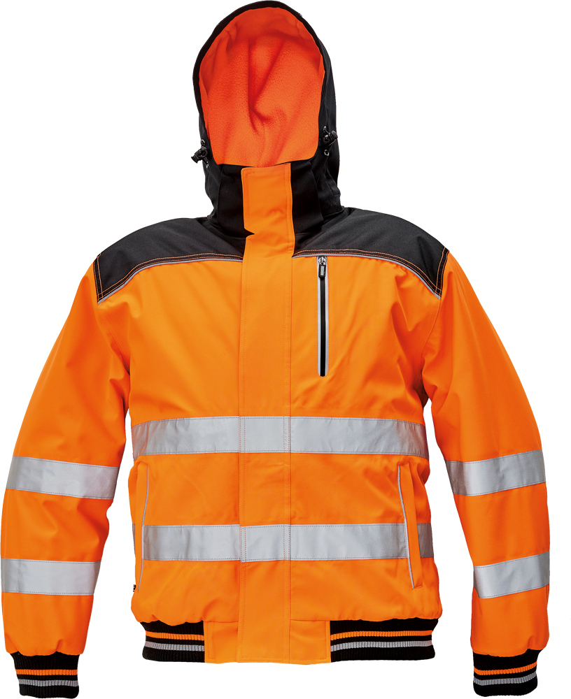 • pánská zateplená zimní pilotka v hi-vis provedení s odnímatelnou kapucí • zesílená část v oblasti ramen • náprsní kapsa na zip v kontrastní barvě • 2 postranní lištové kapsy • 2 uzavíratelné vnitřní kapsy • reflektivní paspulka lemující sedlo a boční kapsy • dekorativní prošití
