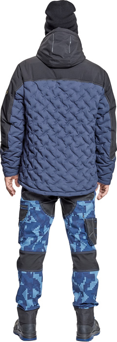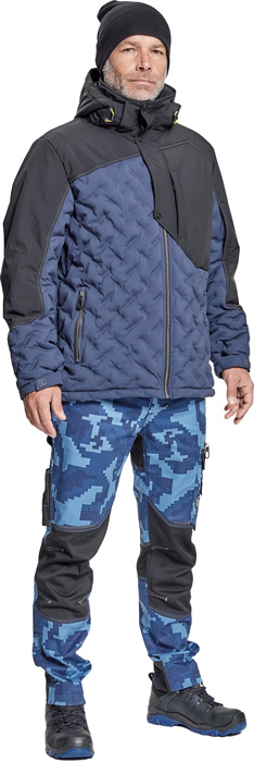 pánská celopropínací zimní bunda s odepínací kapucí, prodloužená část zad, prodyšná a odolná proti větru i dešti, 2 postranní kapsy na zip, 1 náprsní kapsa na zip, 1 kapsa na levém rukávu, 2 vnitřní kapsy na zip a 2 multifunkční kapsy, nastavitelná šířka rukávů pomocí suchého zipu.