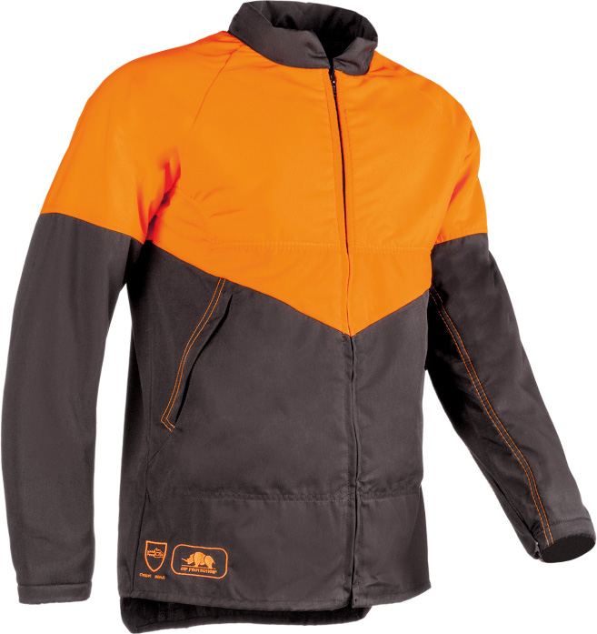pestré barvy; snadno rozlišitelná v zeleném porostu; nejlevnější protipořezová bunda v řadě Ochrana SIP; krátký a rovný límec; zapínání na zip; 2 vsazené kapsy se zapínáním na zip; zužování rukávu pomocí cvočků; větrání vzadu; podlouhlý zadní cíp