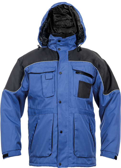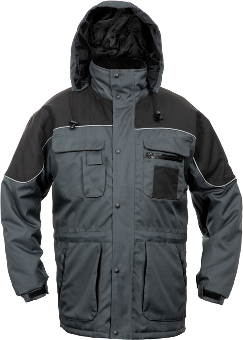 Zateplená nepromokavá bunda s kapucí v límci. Vhodná pro potisk.